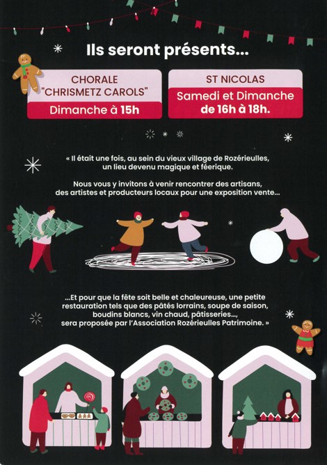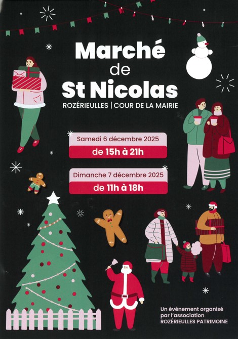 L'association Rozérieulles Patrimoine organise un marché de St Nicolas les 6 et 7 décembre, dans la cour de la mairie.